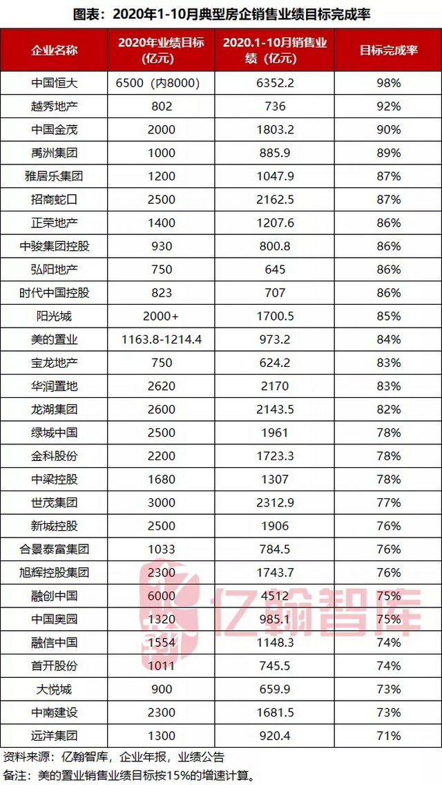 從房企十月銷售業績完成度來看,房企搶收業績的意愿強烈,而且在強大的營銷動作支撐下,企業也實現了較為理想的業績成效。截止到10月末,已有房企成功實現全年預設合約銷售業績目標的90%,多家房企業績目標完成率達到80%,房企的銷售業績依然向著好的方向邁進。